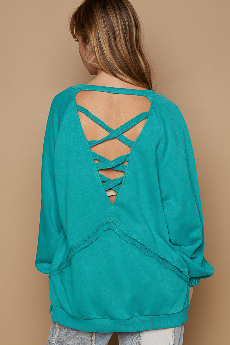 Criss-Cross Back Black Sweatshirt – Relaxed Fit Cozy Women's Top